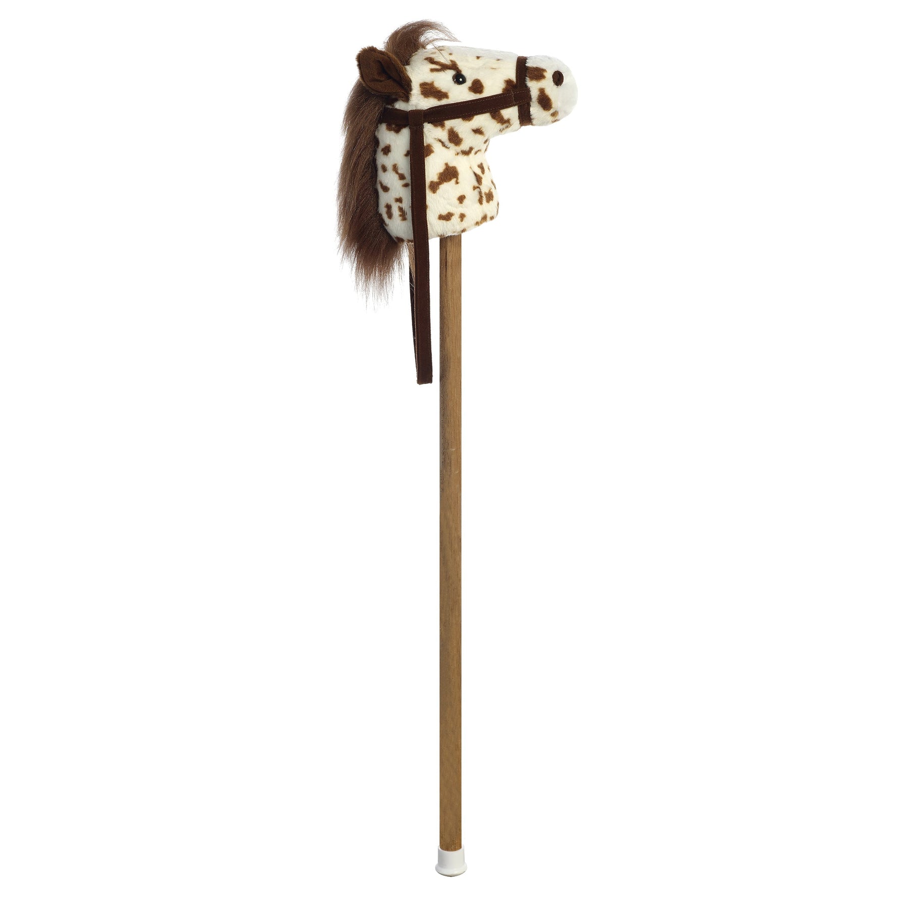 Aurora has a variety of interactive plush toys that elevate playtime and make-believe to the next level! Ride alongside your next favorite partner, this Giddy Up Stick Pony! Attached to a wooden stick, this brown pony has a warm brown fur coat, matching mane color, and white patch at the center of its head. Adding to the realism and fun of this toy, this plush pony can play “gallop” and “neigh” noises.